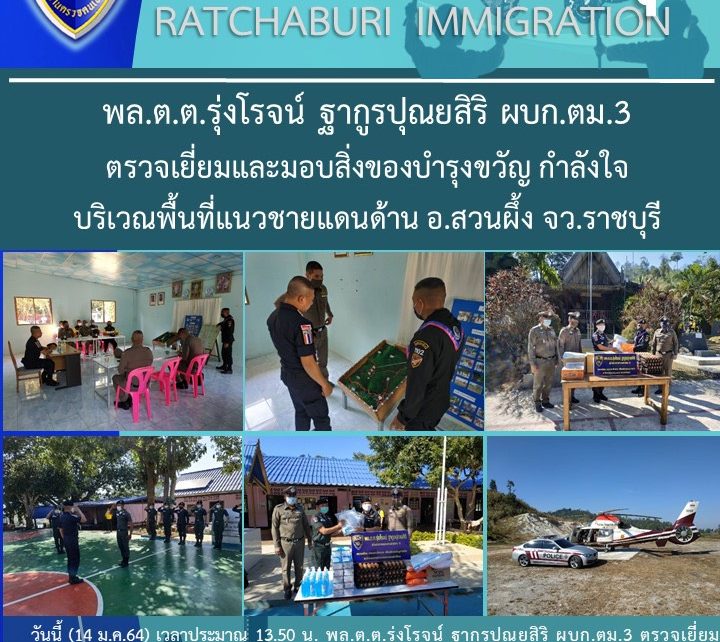ไม่มีหมวดหมู่ “สวญ.ตม.จว.ราชบุรี ต้อนรับการตรวจเยี่ยมจาก ผบก.ตม.3 เดินทางลงพื้นที่คุมเข้มแนวชายแดน พร้อมมอบสิ่งของ เป็นขวัญกำลังใจเจ้าหน้าที่ปฏิบัติงานช่วงโควิด”