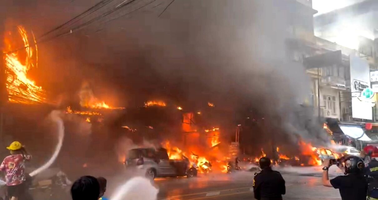 ไม่มีหมวดหมู่ ระทึกเพลิงไหม้ร้านถุงพลาสติกชื่อดังย่านสำเพ็งดับแล้ว 2 คาดไฟช๊อตจากสายเก่าลามเข้าหม้อแปลงขนาดใหญ่จนระเบิด