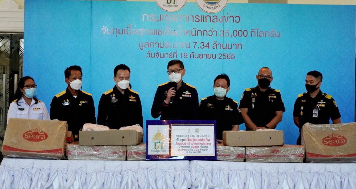 ไม่มีหมวดหมู่ กรมศุลกากรจับกุมเนื้อสุกรแช่แข็งลักลอบนำเข้าจากต่างประเทศ น้ำหนักกว่า 35,000 กิโลกรัม มูลค่าประมาณ 7.34 ล้านบาท