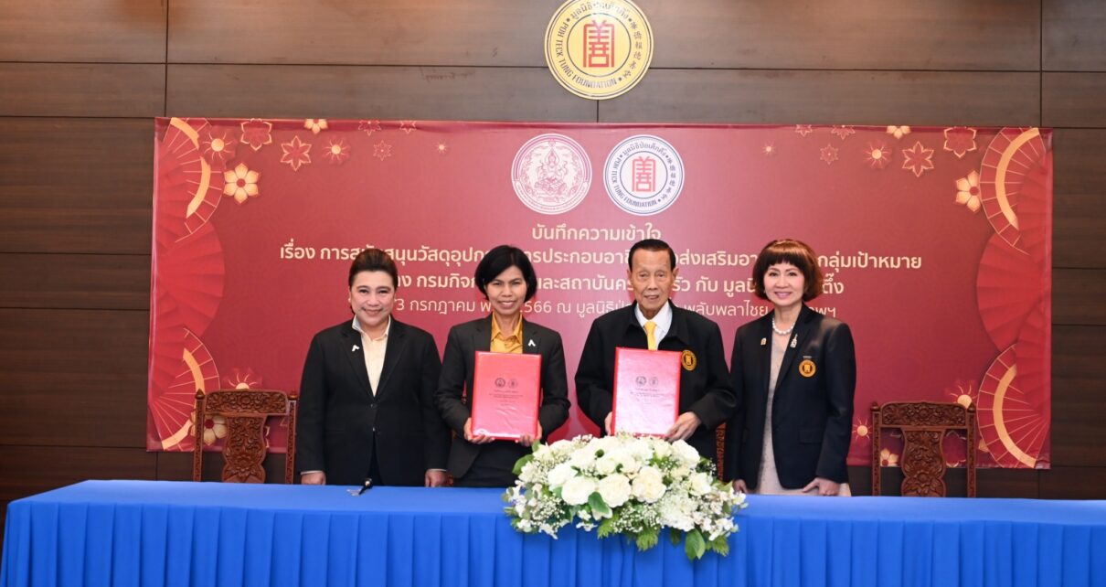 มูลนิธิป่อเต็กตึ๊ง จับมือกรมกิจการสตรีและสถาบันครอบครัว ร่วมลงนาม MOU สนับสนุนอุปกรณ์การประกอบอาชีพ สร้างอาชีพ สร้างชีวิต ในโครงการส่งเสริมอาชีพเพื่อสตรี ณ มูลนิธิป่อเต็กตึ๊ง พลับพลาไชย กรุงเทพฯ