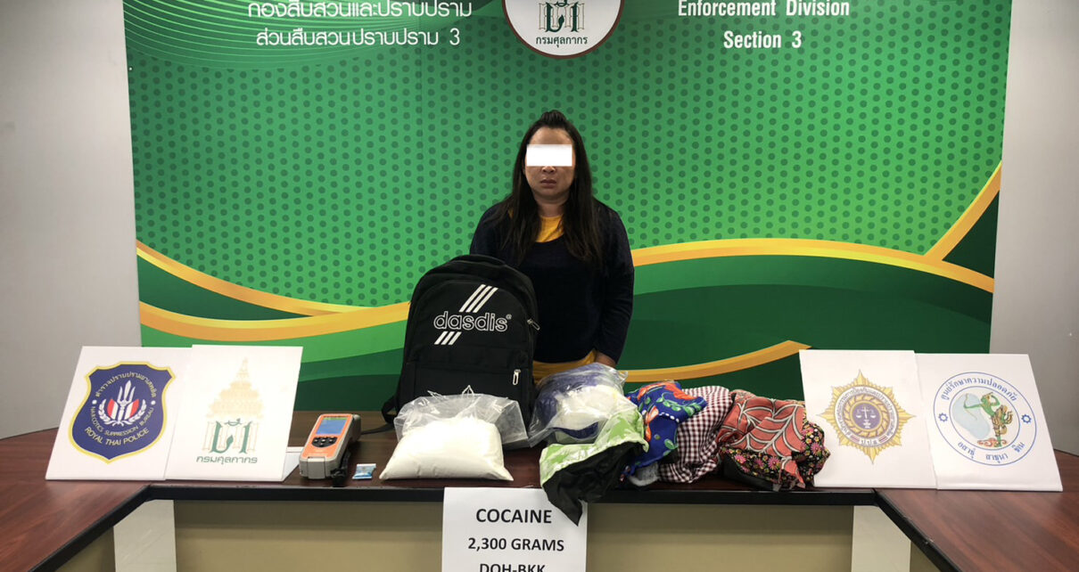 กรมศุลกากรจับกุมหญิงไทยซุกโคคาอีนเข้าประเทศ น้ำหนัก 2,300 กรัม มูลค่ากว่า 6.9 ล้านบาท