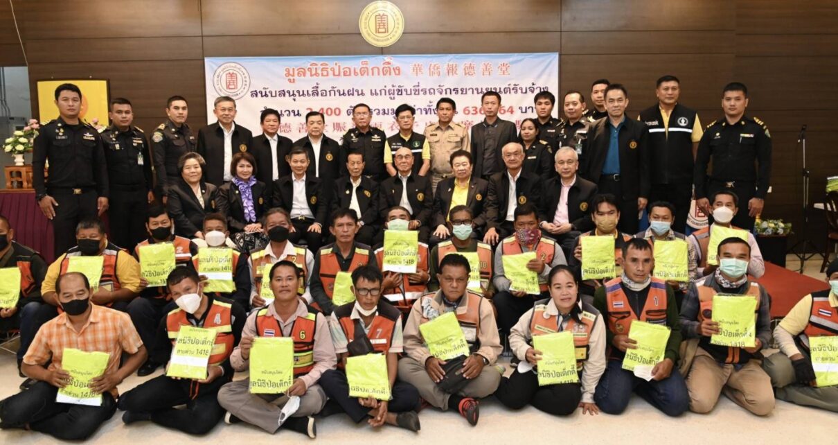 มูลนิธิป่อเต็กตึ๊ง ห่วงใย.. มอบเสื้อกันฝน 2,400 ตัว ให้กับผู้ขับขี่รถจักรยานยนต์รับจ้าง
