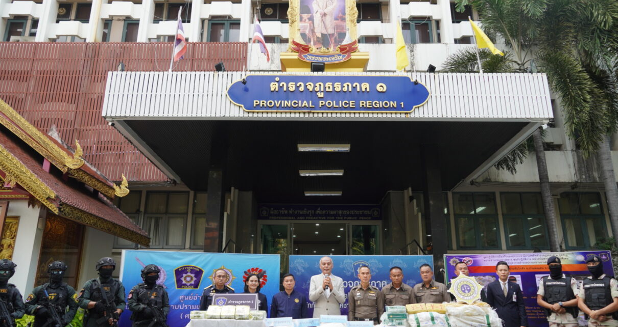 นายชาดา ไทยเศรษฐ์ รัฐมนตรีช่วยว่าการกระทรวงมหาดไทย พร้อมด้วย พล.ต.ท.จิรสันต์ แก้วแสงเอก ผบช.ภ.1 แถลงผลจับกุมยาเสพติด พร้อมของกลางยาบ้า 1,400,000 เม็ด ยาไอซ์ 239 ก.ก.และยาเค 85 ก.ก.มูลค่ารวมกว่า 53,000,000 บาท