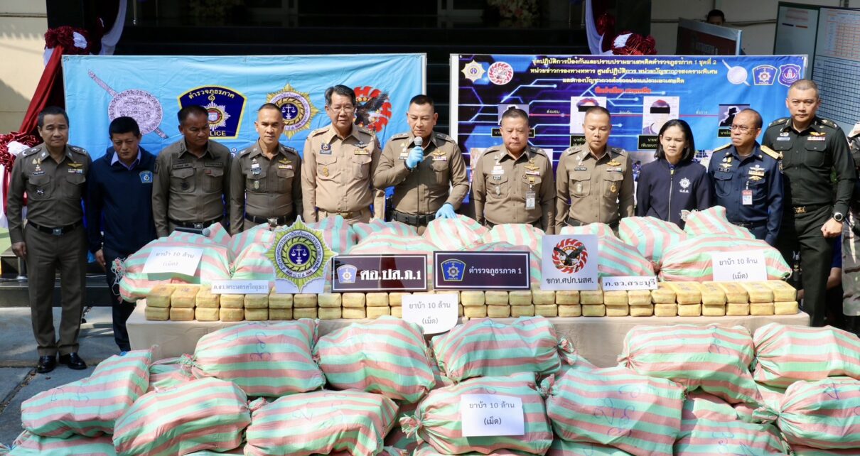 ตํารวจภูธรภาค1 จับกมุเครือข่ายยาเสพติดทีมลําเลียงสายเหนือยึดยาบ้า 10,000,000เม็ด มูลค่ากว่า 300,000,000 บาท