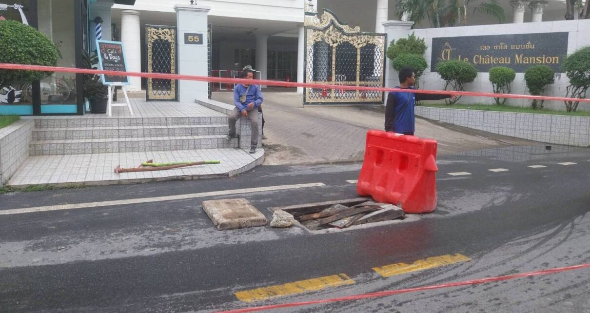 ฝาท่อแตกหักทรุดตัวกลางซอยปรีดีพนมยงค์ 31