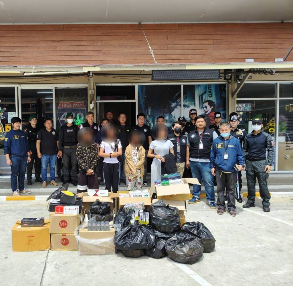 ที่เกิดเหตุมีการติดฟิลม์ที่กระจกทึบเพื่อบังสายตา พบพนักงานชายและหญิง จำนวย 4 คน ภายในร้าน พยายามขัดขวางการปฏิบัติงานของเจ้าหน้าที่ จากการตรวจสอบพบของกลาง บุหรี่ไทยปลอม ผิดกฎหมาย 815 ซอง บุหรี่ต่างประเทศไม่ผ่านพิธีการศุลกากร 2,948 ซอง รวมทั้งสิ้น 3,763 ซอง ประมาณการค่าปรับเป็นเงิน 3,000,000 บาท เจา้หน้าที่จึงยึดไว้เป็นหลักฐาน