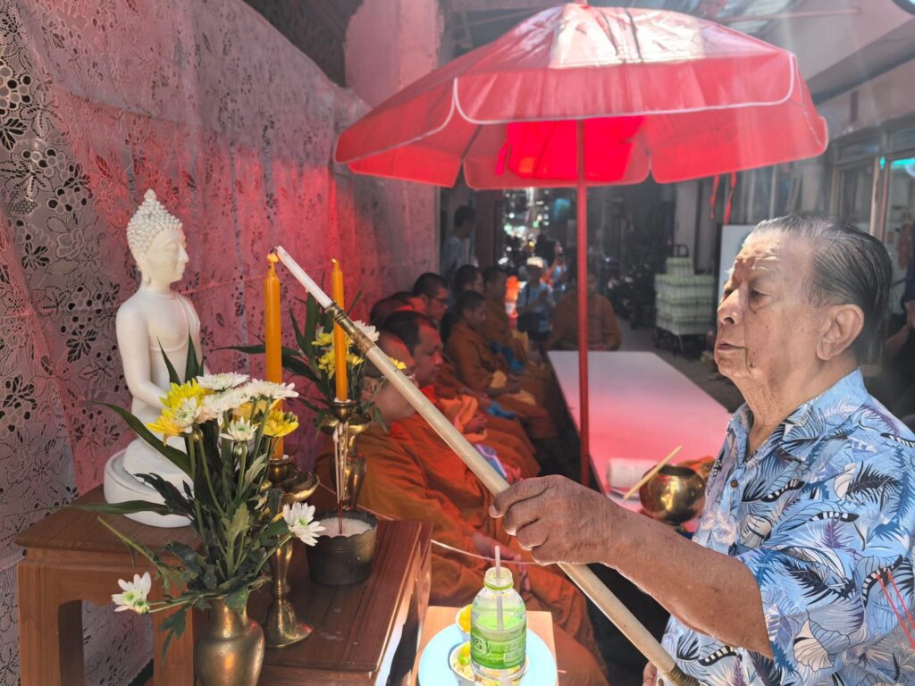 ชุมชนอิสรานุภาพ ร้านค้าในสำเพ็ง และ สน.จักรวรรดิ ร่วมกิจกรรมถวายเทียนจำนำพรรษา ณ. ตรอกโรงคม สำเพ็ง