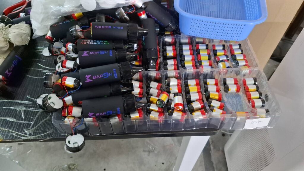 เบื้องต้นพบว่ามีชาวจีนเช่าอาคารดังกล่าวเพื่อดำเนินการผลิต โดยมีการลักลอบนำเข้าส่วนประกอบแยกชิ้น เช่น น้ำยาบุหรี่ไฟฟ้า แบตเตอรี่ และบรรจุภัณฑ์ แล้วนำมาประกอบและบรรจุในประเทศ กำลังการผลิตสูงถึงหลายร้อยชิ้นต่อไม่กี่นาที