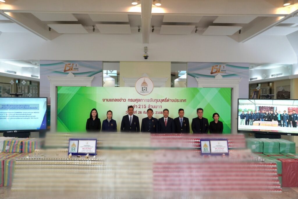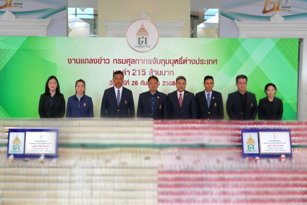 วันนี้ (26 กันยายน 2568) เวลา 11.00 น. นายธีรัชย์ อัตนวานิช อธิบดีกรมศุลกากร พร้อมด้วย นายดิเรก คชารักษ์ รองอธิบดีกรมศุลกากร นายคณิต มีปิด รองอธิบดีกรมศุลกากร และคณะผู้บริหารกรมศุลกากร ร่วมแถลงผลการจับกุมบุหรี่ต่างประเทศละเมิดเครื่องหมายการค้า มูลค่าความเสียหายทางเศรษฐกิจ 215 ล้านบาท