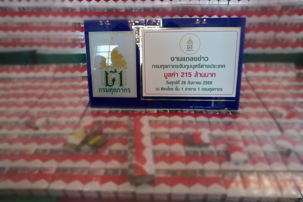ศุลกากรแถลงผลการจับกุมบุหรี่ต่างประเทศละเมิดเครื่องหมายการค้า มูลค่าความเสียหายทางเศรษฐกิจ 215 ล้านบาท