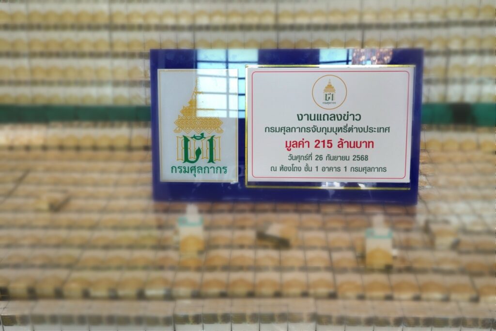 ทั้งนี้ เมื่อวันที่ 18 กันยายน 2568 กรมศุลกากร โดยกองสืบสวนและปราบปรามร่วมกับสำนักงานศุลกากรท่าเรือแหลมฉบัง ได้ทำการตรวจสอบสินค้าผ่านแดนจากประเทศ CAMBODIA ปลายทางประเทศ MAXICO จำนวน 2 ตู้คอนเทนเนอร์ สำแดงสินค้าเป็น บุหรี่ โดยผ่านเข้าทางท่าเรือแหลมฉบัง และออกทางสนามบินภูเก็ต