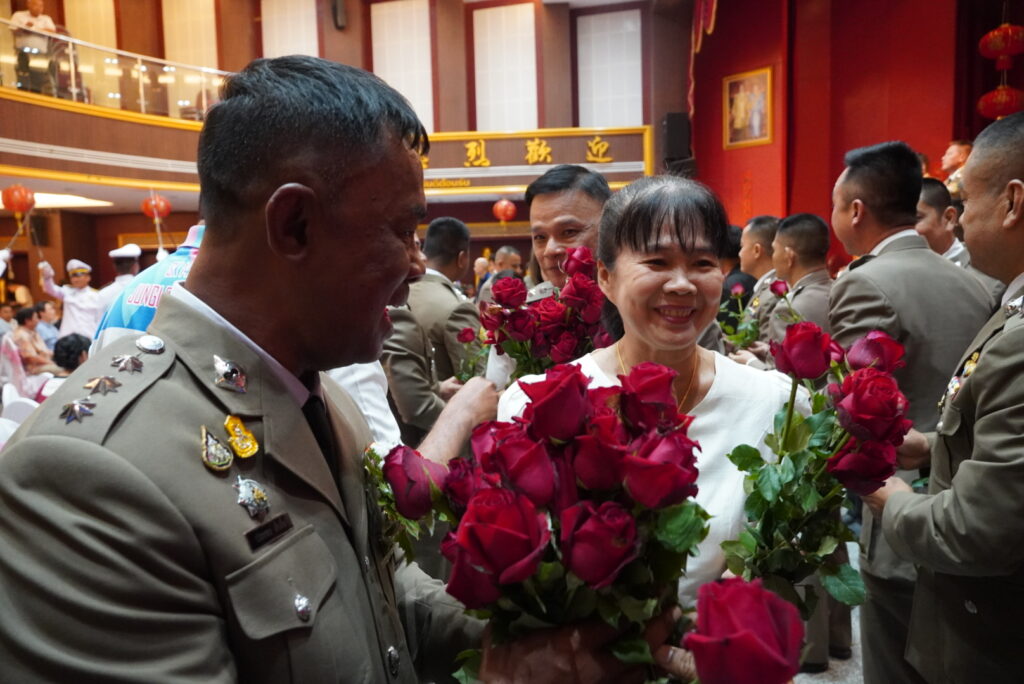 เวลา 19:00 น. ผู้เกษียณอายุราชการ พร้อมด้วยคู่สมรส ร่วมในพิธีอันทรงเกียรติ ‘ลอดซุ้มกระบี่” จากนั้น