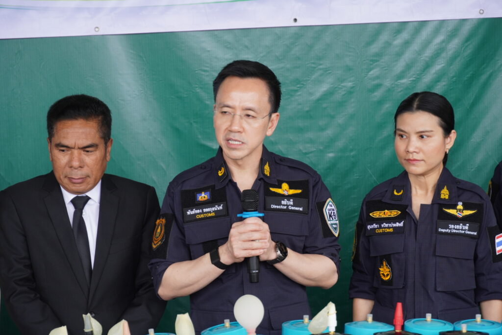 วันที่ 3 พฤศจิกายน 2568 นายพันธ์ทอง ลอยกุลนันท์ อธิบดีกรมศุลกากร แถลงข่าวผลการปราบปรามการนำเข้าสินค้าก๊าซไนตรัสออกไซด์ (ก๊าซหัวเราะ) สินค้าละเมิดเครื่องหมายการค้าและเฮโรอีน มูลค่ารวมกว่า