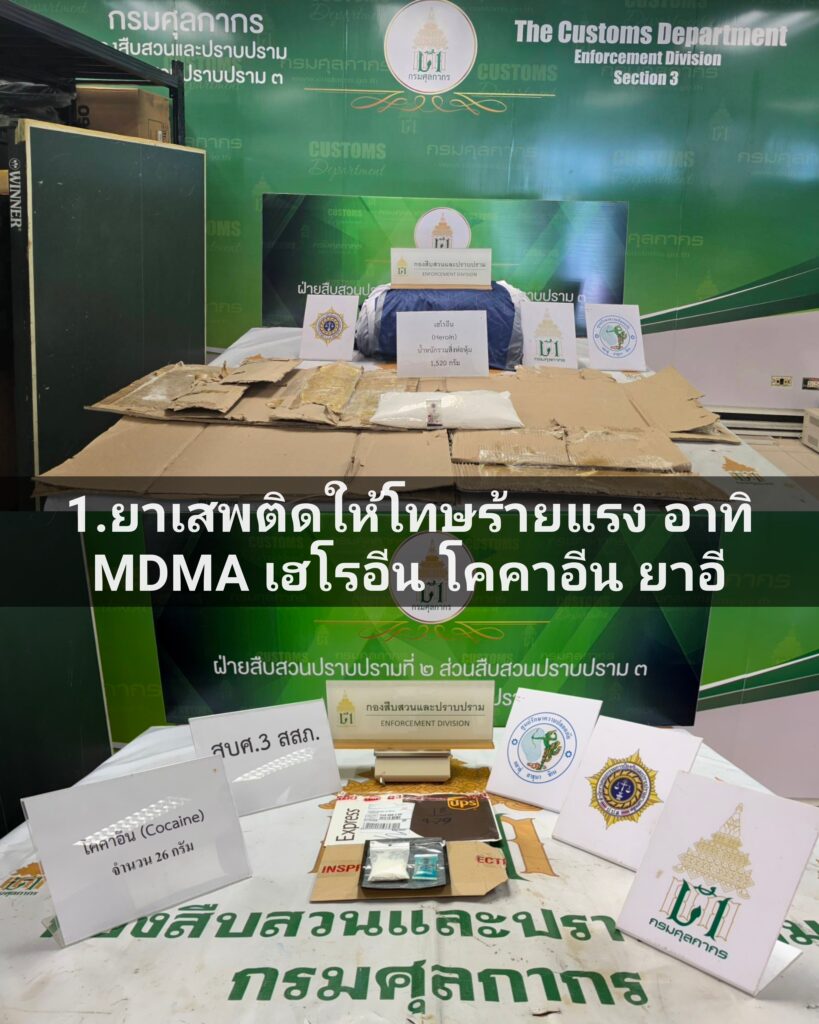 และสินค้าอื่น ๆ มูลค่า 196.16 ล้านบาท รวมมูลค่าทั้งหมด 368.46 ล้านบาทกรมศุลกากรยืนยันว่าจะเดินหน้าปฏิบัติการเชิงรุกเพื่อสกัดกั้นยาเสพติดและสินค้าผิดกฎหมายอย่างต่อเนื่อง เพื่อความปลอดภัยของสังคมและประชาชน