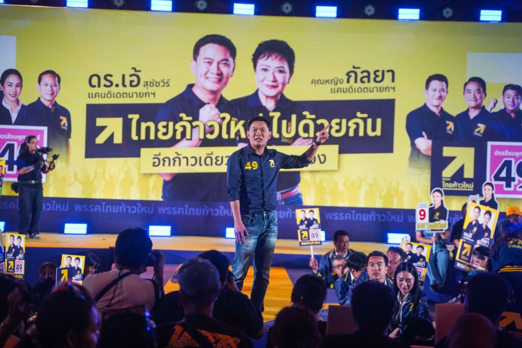วันนี้ (27 มกราคม 2569) พรรคไทยก้าวใหม่ จัดเวทีปราศรัยใหญ่กรุงเทพมหานคร ที่ลานอเนกประสงค์ใต้สะพานพระราม 8 โดยมี ศาสตราจารย์ ดร. สุชัชวีร์ สุวรรณสวัสดิ์ หัวหน้าพรรค และแคนดิเดตนายกรัฐมนตรี นำทีมแกนนำพรรค อาทิ ดร.คุณหญิงกัลยา โสภณพนิช ประธานที่ปรึกษาพรรคไทยก้าวใหม่ และแคนดิเดตนายกรัฐมนตรี น.ส.จิตภัสร์ ตั๊น กฤดากร ผู้สมัคร สส.แบบบัญชีรายชื่อ และแกนนำพรรคไทยก้าวใหม่ และผู้สมัคร สส. กทม. ขึ้นเวทีปราศรัยช่วงโค้งสุดท้ายของการหาเสียง
