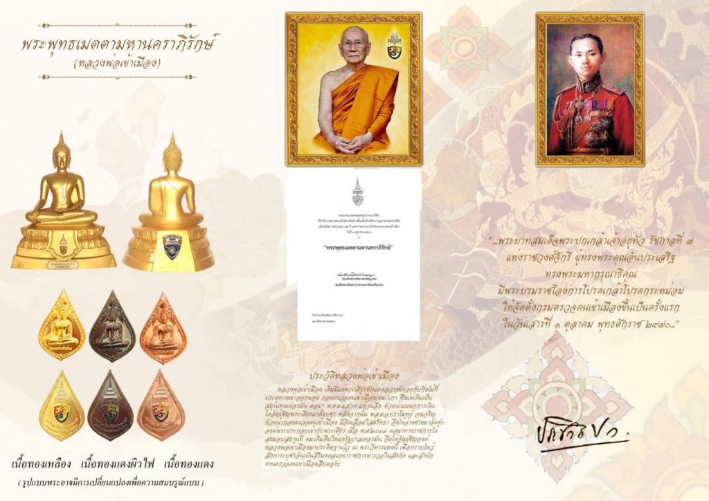 พล.ต.ต.สุรพงษ์ ชัยจันทร์ รอง ผบช.สตม. ในฐานะโฆษก สตม. เปิดเผยว่า สำหรับพระนาม “พระพุทธเมตตามหานคราภิรักษ์” (หลวงพ่อเข้าเมือง) เจ้าพระคุณ สมเด็จพระอริยวงศาคตญาณ สมเด็จพระสังฆราช สกลมหาสังฆปริณายก ได้โปรดเมตตาประทานนาม อันมีความหมายว่า “พระพุทธเจ้าผู้ทรงไว้ซึ่งความเมตตา ทรงคุ้มครองรักษาชาวเมืองทั้งมวล” พร้อมทั้งประทานอนุญาตให้เชิญตราอักษรพระนาม ออป. ประจำพระองค์ มาประดิษฐาน ณ ผ้าทิพย์พระพุทธรูป อีกทั้งได้มีพระเมตตาลงอักขระในมวลสาร พร้อมทั้งอธิษฐานจิต เพื่อนำมาประกอบพิธีเททองหล่อพระพุทธเมตตามหานคราภิรักษ์ (หลวงพ่อเข้าเมือง) ในครั้งนี้อีกด้วย