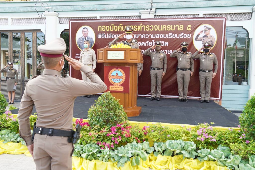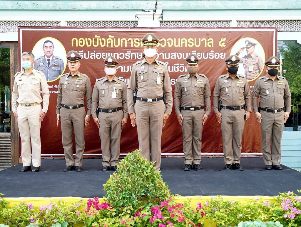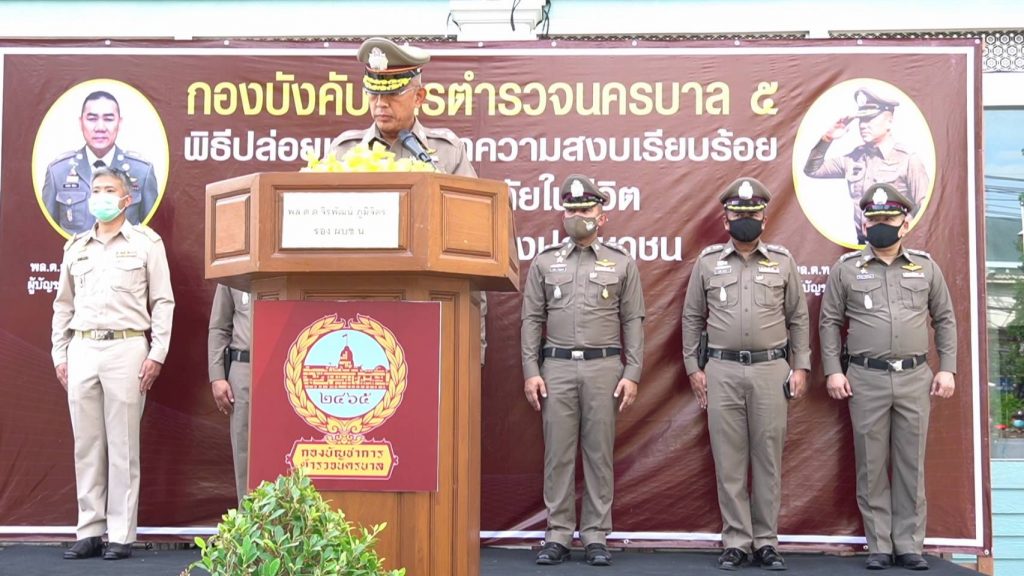พล.ต.ต.จิรพัฒน์ ภูมิจิตร รอง ผบช.น.ประธานในพิธีปล่อยแถวรักษาความสงบเรียบร้อยความปลอดภัยในชีวิตและทรัพย์สินของประชาชน บก.น.5