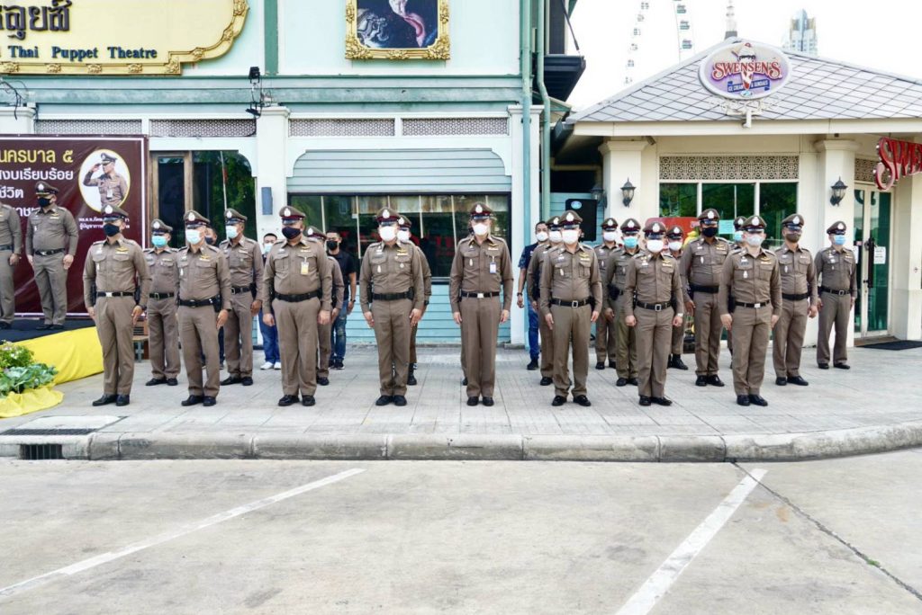 เมื่อเวลา 16:00 น.วันที่ 6 สิงหาคม 2563 ณ.บริเวณลานด้านหน้า เอเชียทีค เดอะริเวอร์ฟรอนท์ ถนนเจริญกรุง แขวงวัดพระยาไกร เขตบางคอแหลม กรุงเทพฯ ท่าน พล.ต.ต.จิรพัฒน์ ภูมิจิตร รอง ผบช.น.รรท. ผบก.น.5 ได้เดินทางมาเป็นประธานในพิธีฯ ปล่อยแถวระดมกำลังเพื่อรักษาความสงบเรียบร้อยความปลอดภัยในชีวิตและทรัพย์สินของประชาชน โดยมี พ.ต.อ.พรชัย ชลอเดช รอง ผบก.น.5 ,พ.ต.อ.ธงชัย บัวรังษี ผกก.สน.วัดพระยาไกร ,พ.ต.อ.จุมพล คณานุรักษ์ ผกก.สน.บางโพงพาง ,พ.ต.อ.สัมพันธ์ เหลืองสัจจกุล ผกก.สน.ทองหล่อ ,พ.ต.อ.เกียรติศักดิ์ บุญพูล ผกก.สน.พระโขนง ,พ.ต.อ.ดนุภัทร ขวัญพสุมนต์ ผกก.สน.ท่าเรือ ,พ.ต.อ.ฤทธี ปานดำ ผกก.สน.คลองตัน ,ผอ.เขต บางคอแหลม ,เจ้าหน้าที่ตำรวจท่องเที่ยว ,เจ้าหน้าที่ทหาร ,เจ้าหน้าที่ตำรวจ 191 ,เจ้าหน้าที่เทศกิจ ,เจ้าหน้าที่สำนักงานเขตบางคอแหลม ,จิตอาสา ,อาสากู้ภัย รวมทั้งเจ้าหน้าที่ตำรวจจาก บก.น.5 ทั้ง 9 สถานี โดยมีกำลังพลเข้าร่วมในพิธีปล่อยแถวระดมพลในครั้งนี้ จำนวน 240 นาย เพื่อปกป้องชีวิตและทรัพย์สิน ของประชาชนรวมถึงการป้องกันและปราบปรามอาชญากรรมที่มีการก่อเหตุสูงขึ้น ทั้งนี้ เพื่อความปลอดภัยและสร้างความผาสุขให้ประชาชนได้อุ่นใจต่อไป