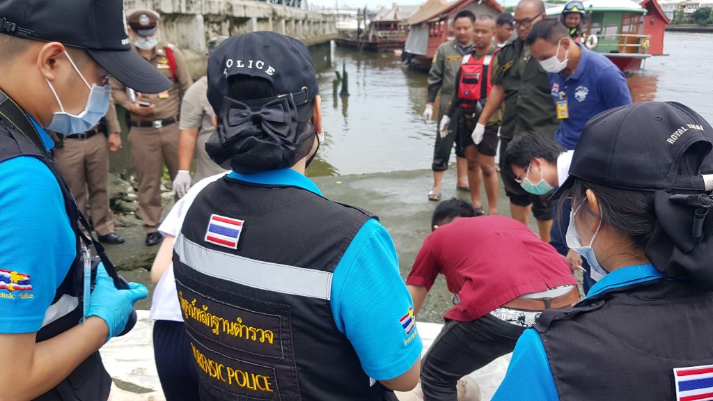 วันที่ 1 ก.ย.63 เวลา 11.00 น. พ.ต.ต.ธีรวัฒน์ เกิดจงรักษ์ สว.สอบสวน สน.ปากคลองสาน ได้รับแจ้งมีศพอยู่ในถุงพลาสติกลอยน้ำที่ท่าน้ำท่าดินแดง จึงรีบรุดไปตรวจสอบพร้อมแพทย์นิติเวช รพ.ศิริราช เจ้าหน้าที่กองพิสูตรหลักฐาน และอาสาสมัครมูลนิธิร่วมกตัญญู
