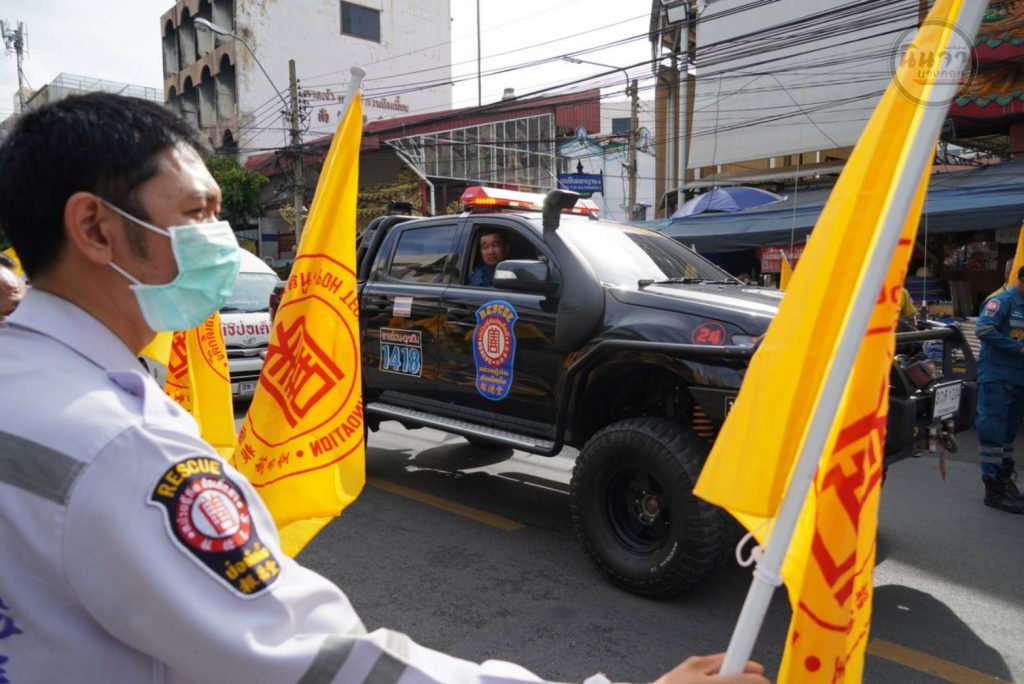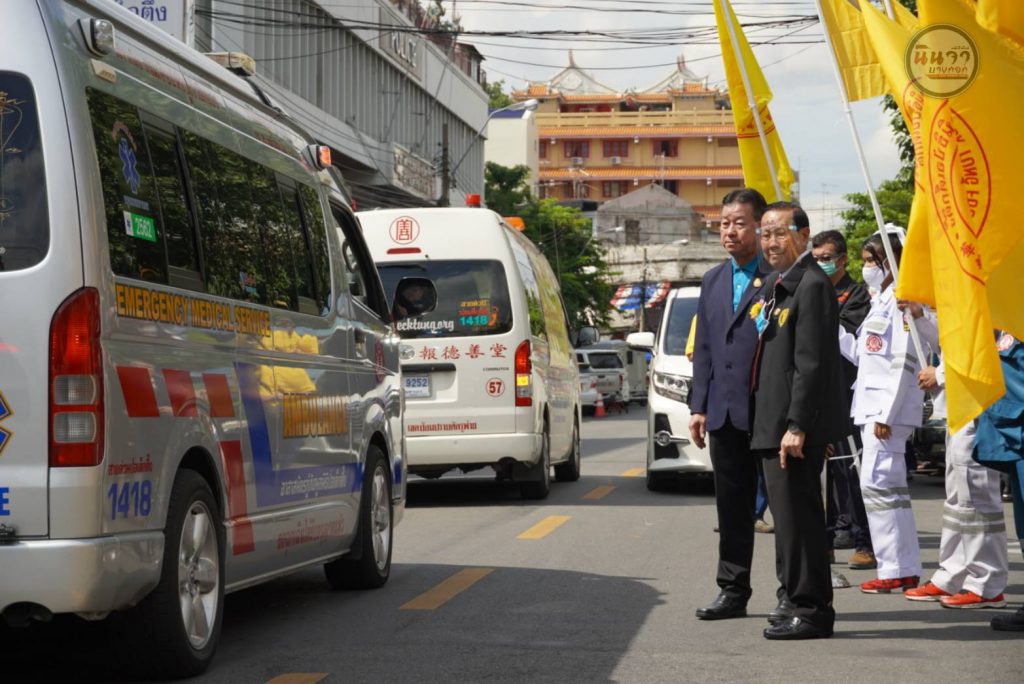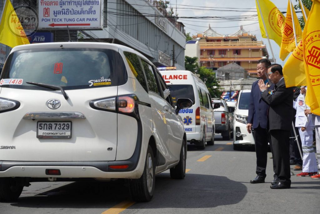 ลำดับต่อไป โดยมี นายยุทธนา ป่าไม้ ผู้อำนวยการเขตป้อมปราบศัตรูพ่าย พ.ต.อ.สุวโรจน์ โชติกาญจนรัศมิ์ ผู้กำกับ สถานนีตำรวจพลับพลาไชย เขต1 พ.ต.อ.จารุภัชร ทองโกมล ผู้กำกับสถานีตำรวจพลับพลาไชย เขต 2 พร้อมด้วย อาสาสมัครกิติมศักดิ์ อาสาศิลปิน อาสาสมัครกู้ภัย และแขกผู้มีเกียรติหลากหลายท่าน ร่วมในพิธิปล่อย คาราวาน ณ มูลนิธิป่อเต็กตึ๊ง พลับพลาไชย กรุงเทพฯ