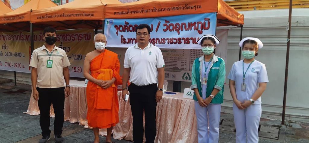 โดยการสนองงานของคณะสงฆ์วัดอรุณราชวราราม นำโดยพระเดชพระคุณพระธรรมรัตนดิลก กรรมการมหาเถรสมาคม ผู้รักษาการแทนเจ้าคณะภาค ๙ เจ้าอาวาสวัดอรุณราชวราราม ร่วมกับกระทรวงวัฒนธรรมโรงพยาบาลนครธน สำนักงานเขตบางกอกใหญ่ สถานีตำรวจนครบาลบางกอกใหญ่ จัดทำศูนย์ช่วยเหลือผู้ประสบความยากลำบาก ถวายอาหารพระภิกษุ-สามเณร ภายในอาราม