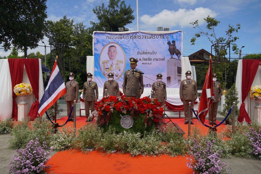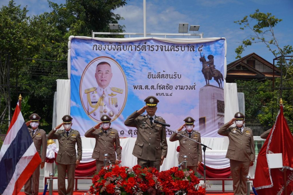 คณะ อนุ กต.ตร.บก.น.8, กต.ตร.สน.ในสังกัด บก.น.8, ข้าราชการตำรวจ ฝอ.บก.น.8 ทุกนาย และแขกผู้มีเกียรติ เข้าร่วมพิธี โดย พล.ต.ต.โชคชัย งามวงศ์ ได้ทำพิธีสักการะสิ่งศักดิ์สิทธิ์ประจำ บก.น.8 และ หมู่เชิญธงประจำบก.น.8 จากนั้น พ.ต.อ.เศรษฐศักดิ์ ยิ้มเจริญ รอง ผบก.น.8 มอบธงประจำ บก.น.8 ให้ พล.ต.ต.โชคชัย งามวงศ์ ผบก.น.8 จากนั้นมอบนโยบายแก่ข้าราชการตำรวจในสังกัด บก.น.8