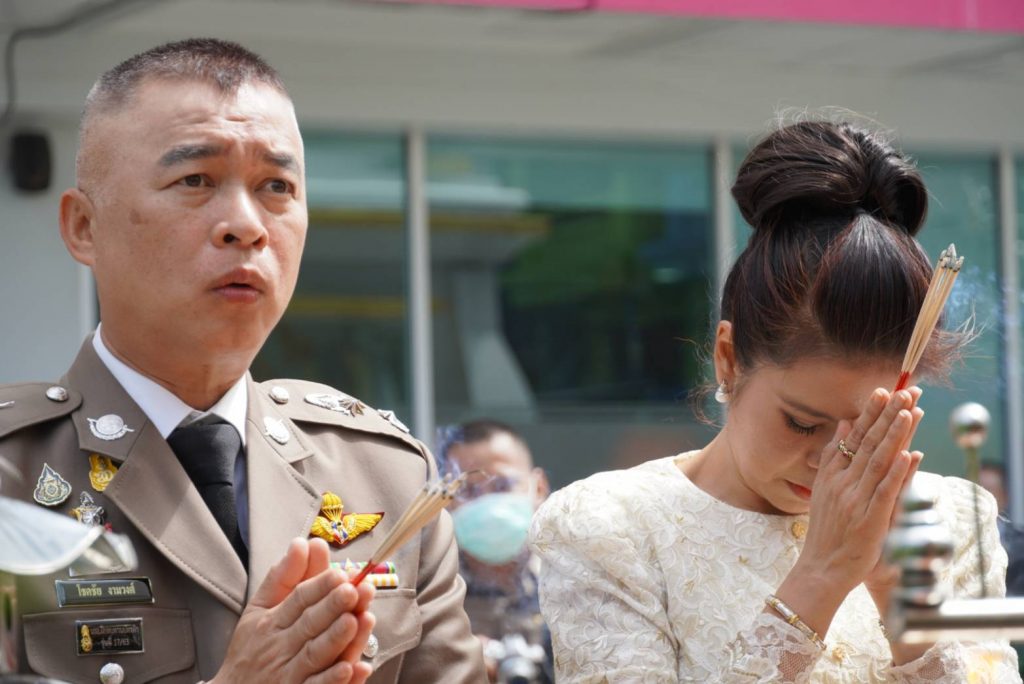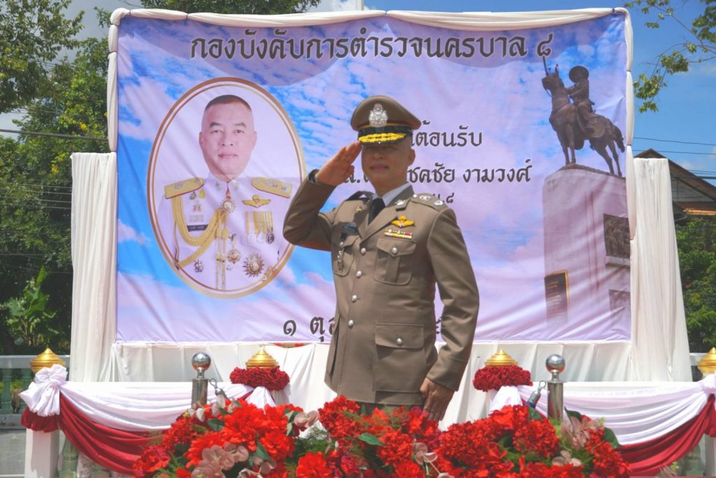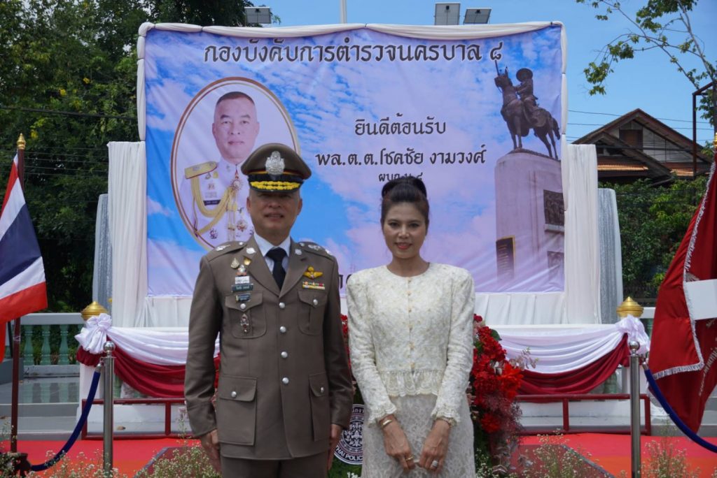หลังจากพิธีรับและมอบหน้าที่ ผบก.น.8 แล้ว พล.ต.ต.โชคชัย งามวงศ์ ผบก.น.8 พร้อมภรรยา