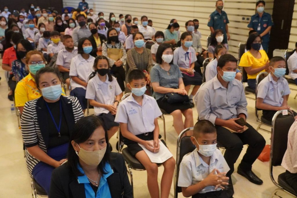 และผู้ช่วยกรรมการมูลนิธิฯ ร่วมในพิธีมอบทุนการศึกษาระดับชั้นประถม จำนวน 1,500 ทุนๆ ละ 2,000 บาท ให้กับเด็ก