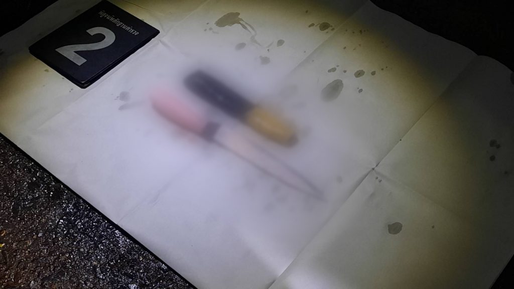 เมื่อเจ้าหน้าที่และอาสาไปถึงที่เกิดเหตุ บริเวณทางเดินหน้าบ้านของตนเอง ภายในซอย จรัญสนิทวงศ์ 12 แขวงวัดท่าพระ เขตบางกอกใหญ่ กรุงเทพมหานคร พบผู้เสียชีวิตเป็นชาย 1 ราย ลักษณะนอนคว่ำหน้า ไม่สวมเสื้อ สวมใส่กางเกงขาสั้นลายทหาร ไม่สวมรองเท้า มีบาดแผลที่หน้าผากด้านขวา เป็นรอยมีดยาวประมาณ 10 ซม. ฟันหน้าหัก 2 ซี่ ที่หน้าอกด้านซ้ายมีแผลที่เนินนม ขนาด 2 ซม. แขนขวาอีก 2 ซม.ครึ่ง ส่วนมีดที่ใช้ก่อเหตุพบทิ้งอยู่ในถังขยะ บริเวณใกล้กับจุดเกิดเหตุ เป็นมีดปลายแหลมปลอกผลไม้