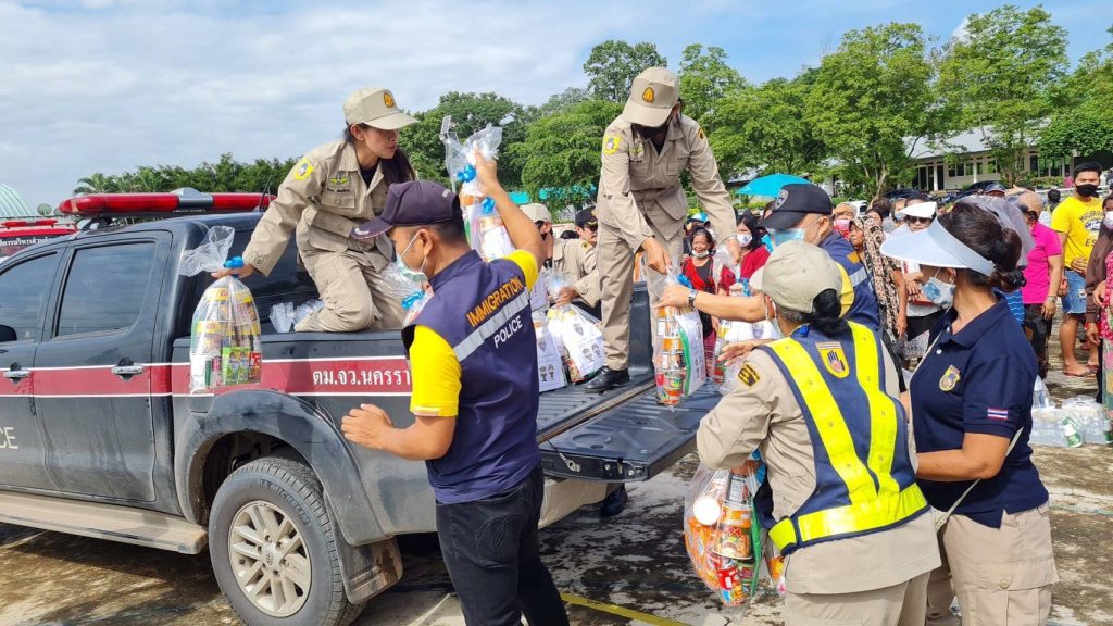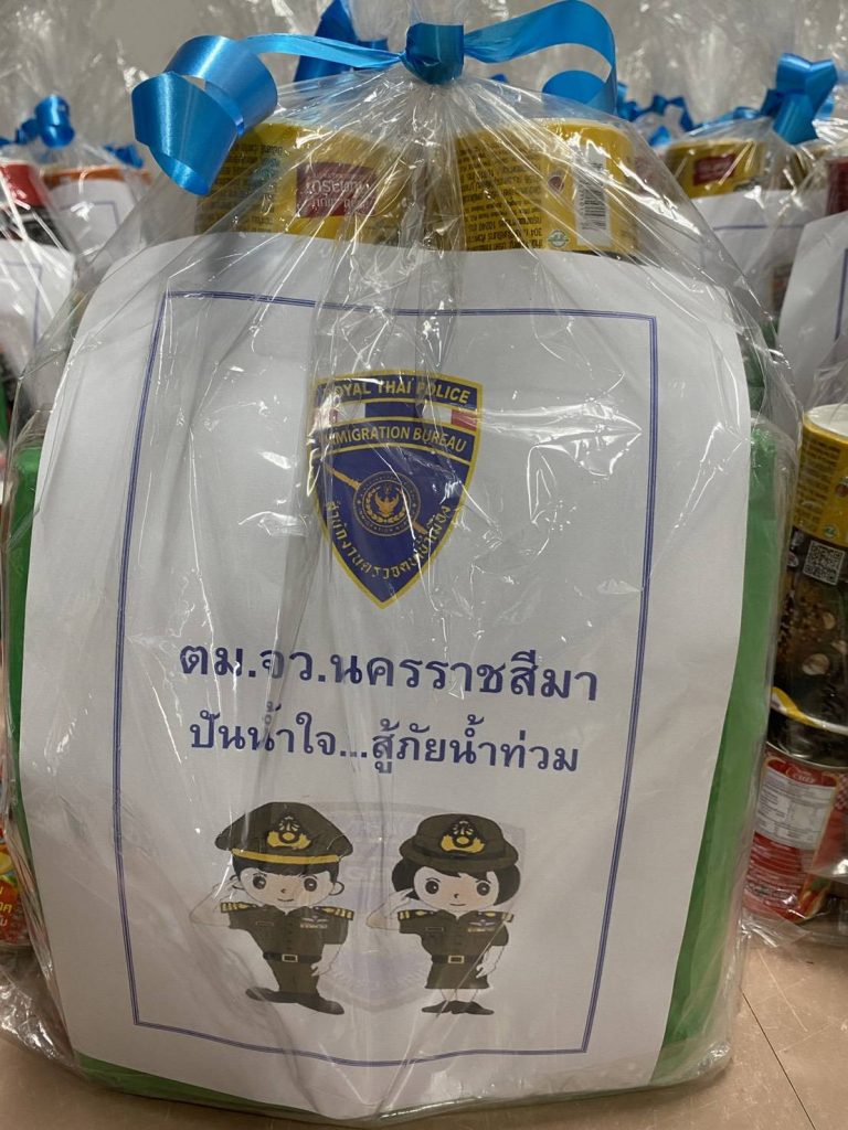 “ตม.โคราช ปันน้ำใจ-สู้ภัยน้ำท่วม ลุยแจกถุงยังชีพช่วยผู้ประสบภัยน้ำท่วม”