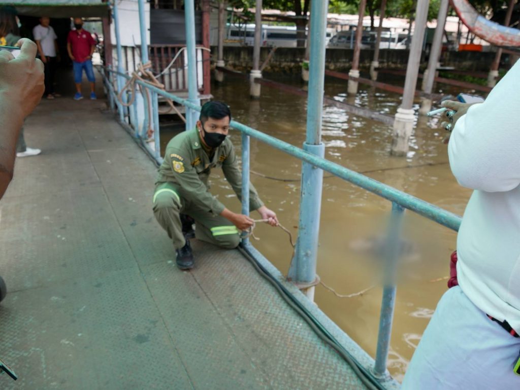 อาสาสมัครมูลนิธิร่วมกตัญญู นามเรียกขาน ปากคลอง 21 ชื่อ นาย นาวี ( ขอสงวนนามสกุล )อายุ 35 ปี บอกเล่าว่า “ผมได้ยินแจ้งว่ามีผู้พบศพลอยน้ำ ที่หน้าห้างชื่อดังย่านเจริญนคร เจ้าหน้าที่ กทม.ผูกแล้วลากจูงมาที่ท่าน้ำการศึกษา ตอนแรกที่เห็นเป็นผู้หญิงลอยหงายหน้า อายุประมาณ 25-30 ปี ผิวขาว ครับ”