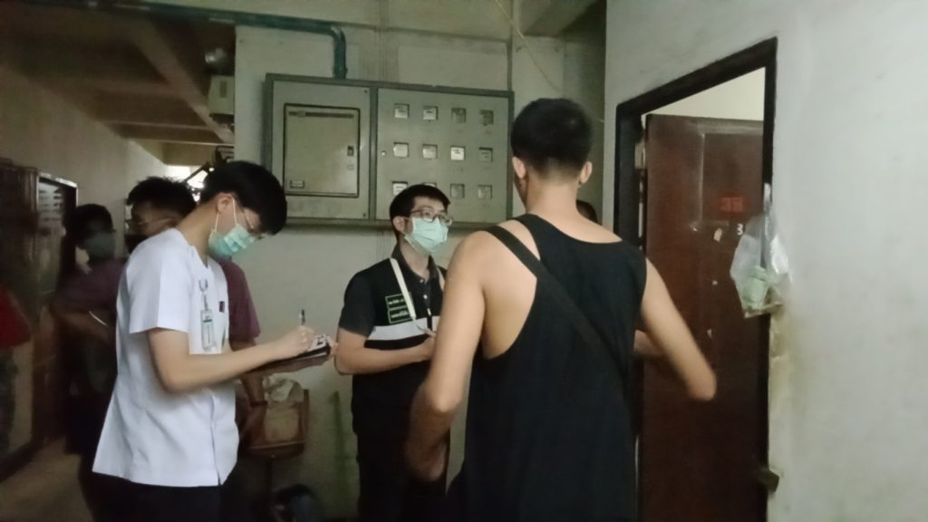 สอบถามจากนาย โทนลิน อายุ 30 ปี เป็นชาวพม่า ซึ่งเป็นเพื่อนร่วมงาน และ เป็นคนพังประตูเข้าไป แล้ว นายอาโป อายุ 40 ปี ซึ่งคอยเป็นล่ามแปลให้ฟัง บอกเล่าว่า ” ตนเป็นเพื่อนร่วมงานกับผู้เสียชีวิต พักอยู่ข้างห้อง วันนี้ตนได้กลิ่นเหม็นเน่า จึงมองหากลิ่น แต่กลิ่นไปแรงอยู่ตรงห้องผู้ตาย จึงหาทางมองเข้าไปด้านใน ก็พบว่า ตายแล้ว จึงไปแจ้งกับผู้ดูแล ก็ขึ้นไปดู และ ก็ตัดสินใจพังประตูเข้าไปก็พบว่านอนตายจริงๆ พบกับผู้ตายครั้งสุดท้ายเมื่อวันศุกร์ ตอนเย็น เลิกงาน 5 โมง ไม่ได้ทำโอ บอกว่า ไม่สบายจะไปหาหมอ ปวดเนื้อปวดตัว มีท้องเสียด้วย ประมาณ 1 ทุ่ม โทรคุยกับเมีย บอกว่า เหนื่อย เพลีย อยากนอน พอมาวันนี้เมียโทรมาหาก็ไม่ได้รับสาย เลยโทรหาเพื่อนๆ ให้มาช่วยดูก็มาพบว่าเสียชีวิตแล้ว”