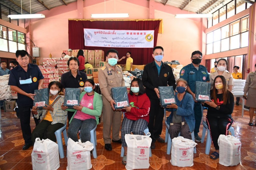 โดยในวันนี้ (วันที่ 16 พฤศจิกายน 63) นายอรัณย์ โตทวด รองผู้จัดการมูลนิธิฯ มอบผ้าห่มแก่ผู้ประสบภัยหนาว พร้อมเครื่องอุปโภคบริโภค ณ บริเวณโรงเรียนบ้านห้วยไร่ อ.เด่นชัย และบริเวณองค์การบริหารส่วนตำบลบ้านปง อ.สูงเม่น จ.แพร่ โดยมี นายสมหวัง พ่วงบางโพ ผู้ว่าราชการจังหวัดแพร่ เป็นประธานในพิธี พร้อมด้วย มูลนิธิร่วมใจจังหวัดแพร่ เป็นผู้ประสานงานและร่วมในพิธี