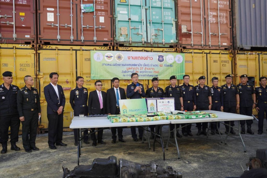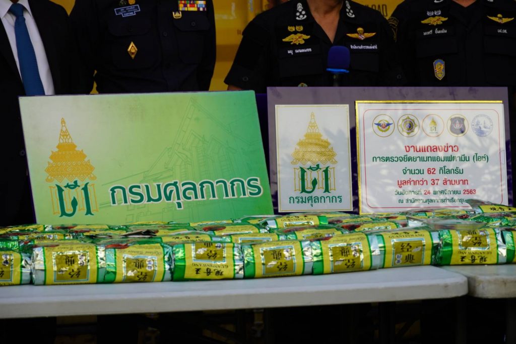 กรมศุลกากรตรวจยึดยาเมทแอมเฟตามีน(ไอซ์) พยามยามลักลอบส่งออกไปประเทศมาเลเซีย น้ำหนักรวมสิ่งห่อหุ้มประมาณ 62 กิโลกรัม มูลค่าประมาณ 37 ล้าน