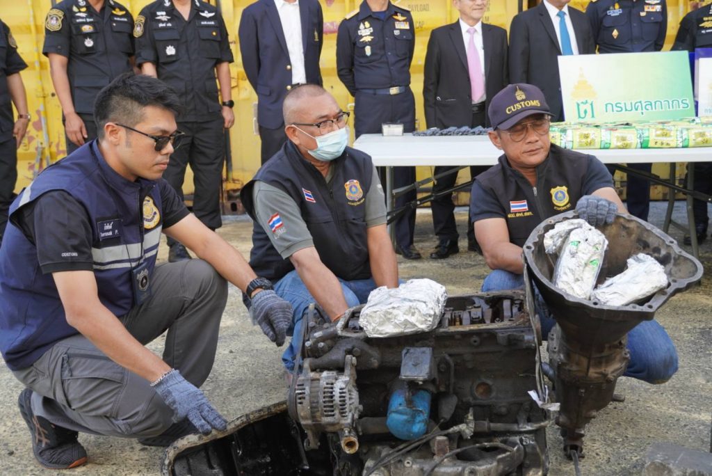โดยเมื่อวันที่ 23 พฤศจิกายน 2563 เวลาประมาณ 10.30 น. เจ้าหน้าที่ศุลกากร กองสืบสวนและปราบปราม ร่วมกับ เจ้าหน้าที่ศุลกากรสำนักงานศุลกากรท่าเรือกรุงเทพ เจ้าหน้าที่ ป.ป.ส. เจ้าหน้าที่ตำรวจ บช.ปส. เจ้าหน้าที่ ศรภ. ทำการตรวจสอบสินค้าที่จะส่งออกไปยังประเทศมาเลเซีย สำแดงชนิดสินค้าเป็น เศษอลูมิเนียม (ALUMINUM ENGINE WITH GEARBOX (SCRAB)) ผลการตรวจสอบสินค้าดังกล่าว ซึ่งเป็นเครื่องยนต์เก่า สภาพชำรุด จำนวนทั้งหมด 74 เครื่อง พบยาเสพติดให้โทษประเภท 1 เมทแอมเฟตามีน (ไอซ์) น้ำหนักรวมสิ่งห่อหุ้ม ประมาณ 62 กิโลกรัม บรรจุอยู่ในถุงชาจีนแบบสูญญากาศ ซุกซ่อนอยู่ภายในช่องว่างของเครื่องยนต์เก่า จำนวน 33 เครื่อง มูลค่ายาเสพติดประมาณ 37 ล้านบาท