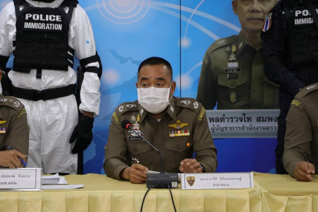สำนักงานตรวจคนเข้าเมือง โดย พล.ต.ท.สมพงษ์ ชิงดวง ผบช.สตม. พร้อมด้วย พล.ต.ต.ณฐพล แสวงกิจ รอง ผบช.สตม., พล.ต.ต.ปิติ นิธินนทเศรษฐ์ ผบก.ตม.1, พ.ต.อ.ยศเอก รักษาสุวรรณ รอง ผบก.ตม.1, พ.ต.อ.กีรติศักดิ์ ก้องเกียรติศิริ ผกก.สส.บก.ตม.1, พล.ต.ต.รุ่งโรจน์ ฐากูรปุณยสิริ ผบก.ตม.3 พ.ต.อ.รัชธพงศ์ เตี้ยสุด รอง ผบก.ตม.3, พ.ต.อ.จิรพงศ์ รุจิรดำรงค์ชัย ผกก.สส.บก.ตม.3,พล.ต.ต.พันธนะ นุชนารถ ผบก.สส.สตม.,พ.ต.อ.สถิตย์ พรมอุทัย รอง ผบก.สส.สตม.,พ.ต.อ.ชย พานะกิจ ผกก.(สอบสวน) หน.กลุ่มงานสอบสวน บก.สส.สตม.ร่วมกันแถลงข่าว ดังนี้เจ้าหน้าที่ กก.สส.บก.ตม.1 ได้รับแจ้งจากพลเมืองดีว่ามีบ้านในชุมชนแห่งหนึ่ง มีคนต่างด้าวมาพักอาศัยในชุมชน เจ้าหน้าที่ฯจึงได้จัดกำลังไปตรวจสอบ เมื่อถึงชุมชนได้มาพบกับ ประธานชุมชน ชื่อ นายนัทธี และนำเจ้าหน้าที่ไปที่บ้านพักหลังดังกล่าว ซึ่งมีลักษณะเป็นบ้านริมคลองมีประตูเหล็กปิดอยู่โดยการใช้โซ่คล้องแล้วล็อคด้วยแม่กุญแจไว้ เจ้าหน้าที่จึงได้ประสานกับผู้ให้เช่าบ้านและแจ้งข้อมูลเกี่ยวกับกรณีคนต่างด้าวดังกล่าวให้ทราบ ผู้ให้เช่าบ้านจึงยินยอมให้เจ้าหน้าที่เข้าตรวจค้นภายในบ้าน ประธานชุมชนจึงได้ให้เจ้าหน้าที่ของชุมชนทำการตัดโซ่ที่คล้องประตูเหล็กดังกล่าวไว้ เมื่อเจ้าหน้าที่เข้าไปภายในพบบ้านไม้ มีลักษณะเป็นบ้าน 2 ชั้น พบบุคคลต่างด้าวนั่งรวมกันอยู่บริเวณ ชั้น 2 จำนวน 15 คน และหลบอยู่ในห้องน้ำอีกจำนวน 3 คน รวมจำนวน 18 คน เจ้าหน้าที่จึงได้เรียกให้ไปรวมกันที่บริเวณชั้น 1 ของบ้าน เจ้าหน้าที่ได้แสดงตนเป็นเจ้าหน้าที่ตำรวจตรวจคนเข้าเมืองเพื่อขอตรวจสอบเอกสาร(หนังสือเดินทาง) บุคคลต่างด้าวทั้ง 18 คน ซึ่งไม่สามารถแสดงหนังสือเดินทางได้