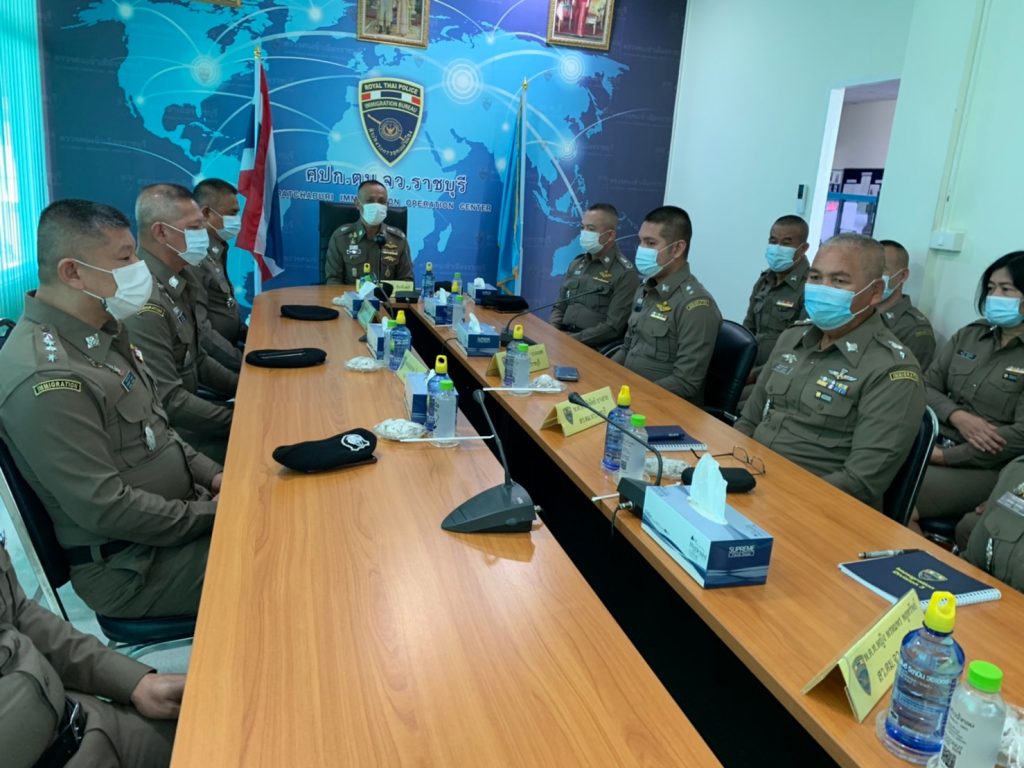 ต่อมาในวันที่ 22 ม.ค.64 เวลา 10.00 น. พล.ต.ท.สมพงษ์ ชิงดวง ผบช.สตม.ได้เชิญ พล.ต.ท.สุรพงษ์ ชัยจันทร์ ผบช.กมค. เป็นตัวแทนเดินทางไปตรวจเยี่ยมมอบสิ่งของบำรุงขวัญ พร้อมชุดอุปกรณ์ป้องกัน โควิด-19 ให้กับ ตม.จว.ราชบุรี และมี พล.ต.ต.นิพนธ์ รัตนศิริเเสงโชติ ผบก.จต.8 ร่วมตรวจและร่วมบรรยายให้ความรู้กับเจ้าหน้าที่ในเรื่องข้อกฏหมายว่าด้วยคนเข้าเมือง, การค้ามนุษย์,ประกาศมหาดไทยที่เกี่ยวข้อง รวมถึงข้อกฎหมายอื่นๆ ที่เกี่ยวข้องของจเรตำรวจ เพื่อเป็นความรู้ในการปฏิบัติหน้าที่ เพราะตำรวจ ตม. มีการปฏิบัติที่ขึ้นกับคำสั่งของ ศบค. ที่กำหนดให้เข้มงวดกับการจับกุมผู้ที่หลบหนีเข้าเมือง เรื่องที่เน้นย้ำคือ ตำรวจทุกคนเป็นเจ้าพนักงานโดยตรง และยังต้องปฏิบัติตาม พ.ร.บ.ปราบปรามการค้ามนุษย์ เพราะการค้ามนุษย์กับการลักลอบเข้าเมือง เกี่ยวเนื่องกันจากการแสวงหาประโยชน์ จึงอาจเข้าข่ายการค้ามนุษย์ โดยมี พ.ต.ท.อังคาร ยะสะนพ สวญ.ตม.จว.ราชบุรี พร้อมด้วยข้าราชการตำรวจในสังกัด ตม.จว.ราชบุรี ให้การต้อนรับและเข้าร่วมรับฟังการบรรยายความรู้ข้อกฎหมาย เพื่อเป็นแนวทางในการปฏิบัติหน้าที่ต่อไป
