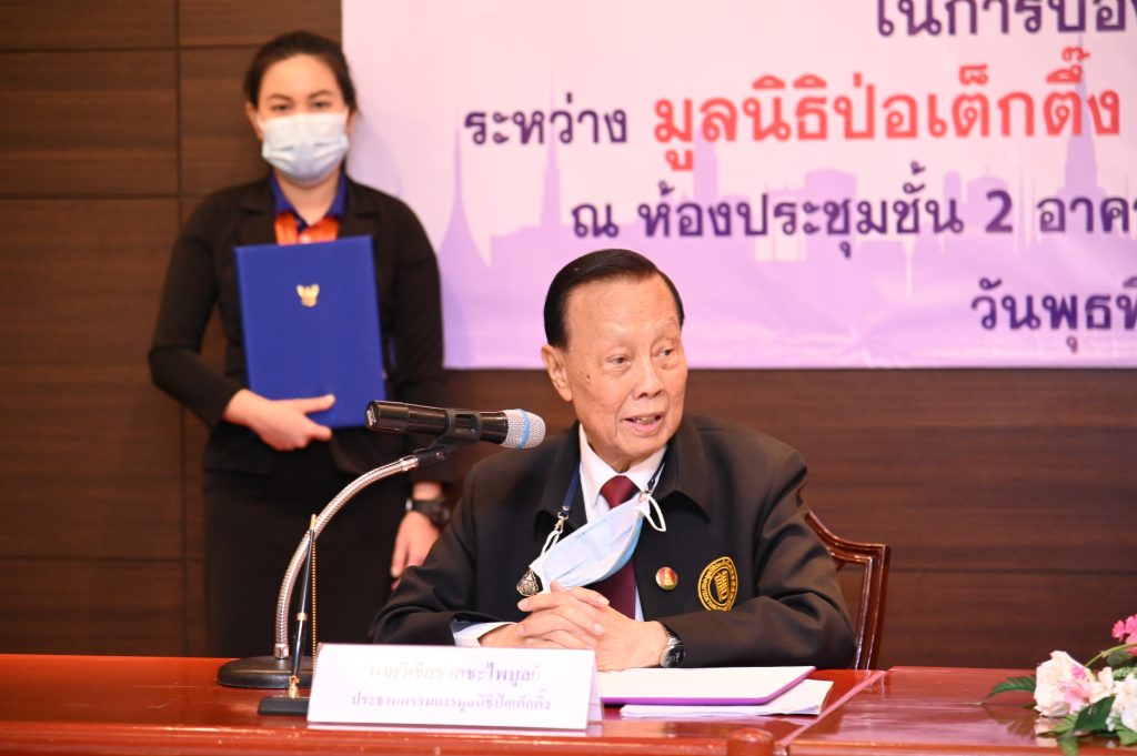 นายวิเชียร เตชะไพบูลย์ ประธานกรรมการมูลนิธิป่อเต็กตึ๊ง เปิดเผยว่า การลงนามบันทึกความเข้าใจว่าด้วยความร่วมมือกันในครั้งนี้ ต้องขอขอบคุณท่านอธิบดี และกรมป้องกันและบรรเทาสาธารณภัย กระทรวงมหาดไทย