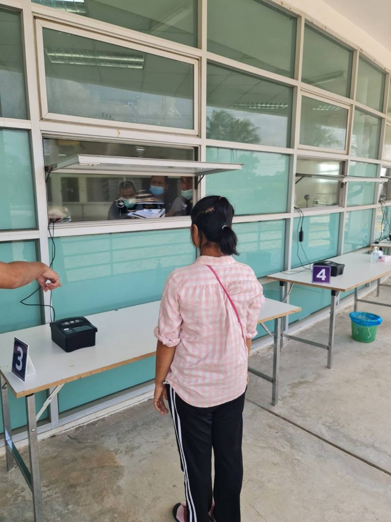 รับบัตรคิว โดยแสดงหลักฐานการจองคิวล่วงหน้า (จาก รบบ QueQ)