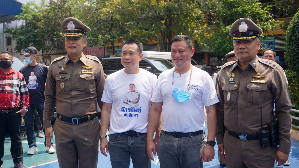 โดยมีพล.ต.ต.โชคชัย นามวงศ์ ผบก.น.8 ,พ.ต.อ.ฉัฐกิตติ์ ผดุงจันทน์ดนัย ผกก.สน.สำเหร่,นายดนัย รอดจากไร้ พร้อมด้วย นายทนงชัย กล่อมเจริญ ประธานชุมชนวัดสุทธาราม ,นายพิสิษฐ์ อัครโชคมงคล ประธานชุมชนหงษ์ทอง,นายพิพัฒน์ เจริญผลมาก ประธานชุมชนอู่ใหม่,นายสัมฤทธิ์ เอื้อโชติพนิช/เฮียเซี้ย/ประธานชุมชนสวนสมเด็จย่า,นางอัยยา แหวววงศ์ (แดง) ชุมชนซอยวัฒนา,นายฤทธิ์ชอบ กฤษณคุปต์ ประธานชุมชน ท่าดินแดง14 -16,นายทรงพล สังข์ชาวนา ประธานชุมชน หลังโรงพยาบาลสมเด็จเจ้าพระยา,นางรัตรนา พึ่งสาย ประธานชุมชนสำปาย้าพัฒนา,นางนัยนา ปานนิวัฒน์ ประธานชุมชนวัดเศวกฉัตร,นายทรงศักดิ์ จิตต์ทิพย์โสภา ประธานชุมชนหลังตลาดเจริญนคร/55 รวมทั้งพ่อแม่พี่น้องประชาชนร่วมให้การต้อนรับและให้กำลังใจอย่างเนืองแน่นซึ่งบรรยากาศเต็มไปด้วยความอบอุ่น