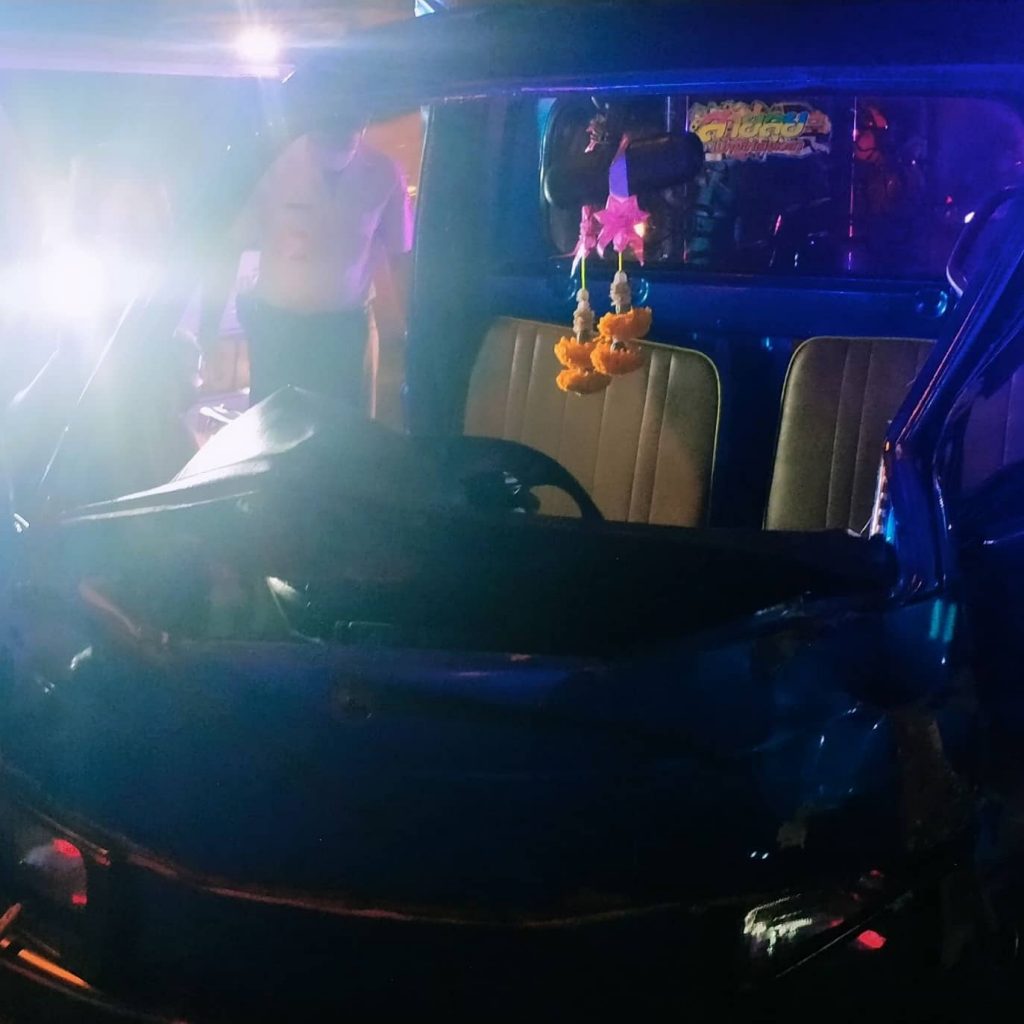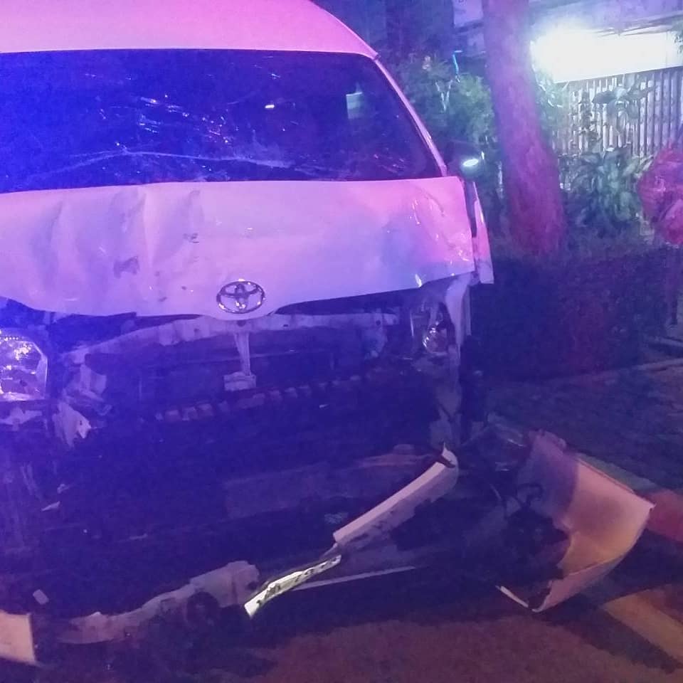 รถตู้ฝ่าไฟเหลืองไม่พ้นชนอัดซูบูลุ ขาติดคอนโซลหน้าหวิดดับสลดกลางสี่แยก กม.9 ขาเข้าประชาอุทิศ