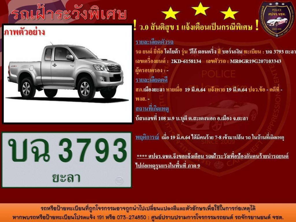 วันนี้ 20 มีนาคม 2564 เวลา 11.00 น. พันเอก เกียรติศักดิ์ ณีวงษ์ โฆษกกองอำนวยการรักษาความมั่นคงภายในภาค 4 ส่วนหน้า แถลงชี้แจงกรณี คนร้ายปล้นรถและยิงปะทะเจ้าหน้าที่จุดตรวจ ในพื้นที่ อ.ทุ่งยางแดง จ.ปัตตานี เมื่อช่วงค่ำวานนี้ ( 19 มี.ค. 64) เวลา 20.20 น. ได้เกิดเหตุคนร้าย 8 คน ปล้นรถกระบะ วีโก้ สีบรอนเงิน ทะเบียน บฉ 3793 ยะลา บริเวณแยกบารามีแต จ.ยะลา ซึ่งโดยภายหลังทราบเหตุ พล.ท. เกรียงไกร ศรีรักษ์ แม่ทัพภาคที่ 4/ผู้อำนวยการรักษาความมั่นคงภายในภาค 4 ได้สั่งการให้หน่วยในพื้นที่ ตั้งจุดตรวจ/จุดสกัดหน้าฐานปฏิบัติการ, ชคต, ชป.จรยุทธ์ ตั้ง จุดตรวจ POP UP ในพื้นที่รับผิดชอบ จนเวลาประมาณ 21.00 น. ขณะ ชุดปฏิบัติ กองร้อยทหารพรานที่ 4409 ลาดตระเวนบนเส้นทางชนบทหมายเลข 6410