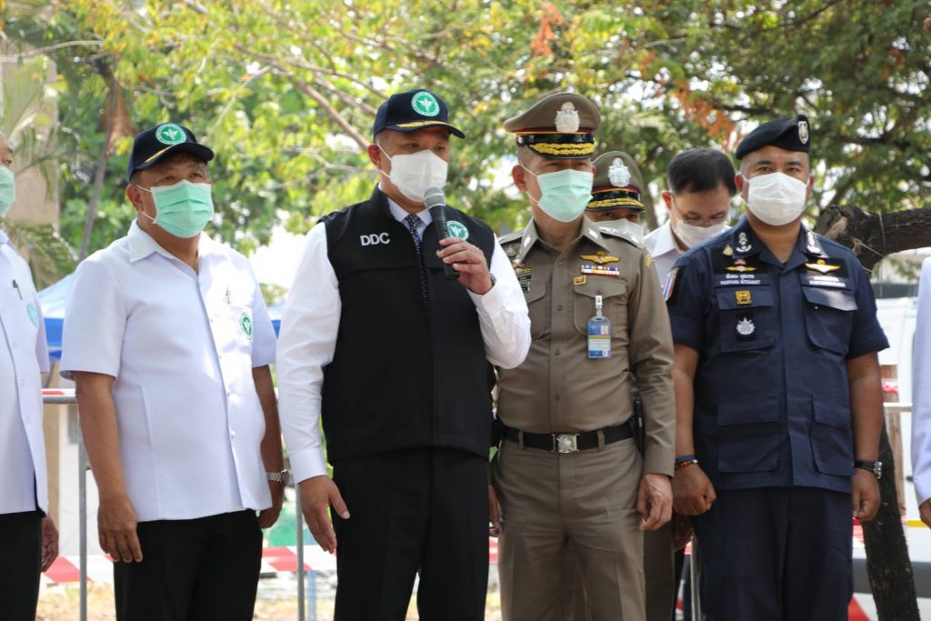 วันนี้ (24 มี.ค. 2564) เวลา 11.00 น. นายอนุทิน ชาญวีรกูล รองนายกรัฐมนตรีและรัฐมนตรีว่าการกระทรวงสาธารณสุข, , นพ.เกียรติภูมิ วงศ์รจิต ปลัดกระทรวงสาธารณสุข, นพ.โอภาส การย์กวินพงศ์ อธิบดีกรมควบคุมโรค, นพ.โสภณ เอี่ยมศิริถาวร รองอธิบดีกรมควบคุมโรค, พล.ต.ท.สมพงษ์ ชิงดวง ผบช.สตม.,พล.ต.ต.อาชยน ไกรทอง รอง ผบช.สตม. และ พล.ต.ต.พันธนะ นุชนารถ ผบก.สส.สตม. พร้อมด้วยหน่วยงานที่เกี่ยวข้อง เดินทางมาตรวจเยี่ยม รพ.สนามชั่วคราว สตม. กรณีมีการเคลื่อนย้ายผู้ต้องกักไปยัง รพ.สนามชั่วคราว