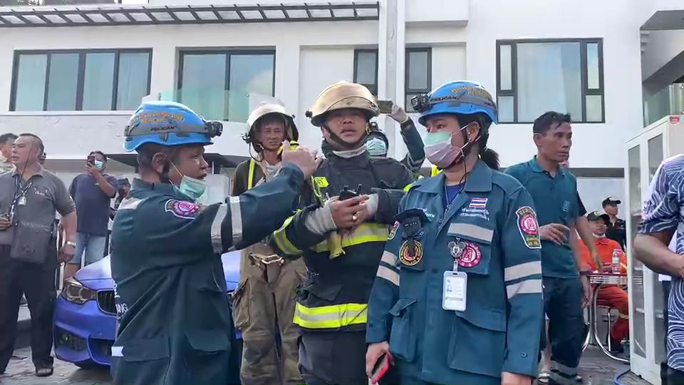 ขณะที่ พล.ต.อ.อัศวิน ขวัญเมือง ผู้ว่าราชการกรุงเทพมหานคร ลงพื้นที่ตรวจจุดเกิดเหตุ โดยได้ร่วมประชุมวางแผนกับทีมช่วยเหลือ พร้อมระบุว่าจากการตรวจสอบเบื้องต้นด้วยการโดรนบินจับความร้อนหาผู้ที่ติดภายใต้ซากอาคารพบว่าภายในอาคารยังมีความร้อนสูง ส่วนผู้ติดภายในเบื้องต้นคาดว่า 4 ราย เป็นเจ้าของบ้าน 1 ราย ติดอยู่ในห้องน้ำคาดว่าเสียชีวิต ส่วนเจ้าหน้าที่อาสากู้ภัยคาดว่าอย่างน้อยติดอยู่ 3 ราย ยืนยันเสียชีวิต 2 ราย ส่วนอีก 1 รายยังมีสัญญาณชีพ และอยู่ระหว่างการประเมินว่ามีผู้ติดอยู่อีกหรือไม่ พร้อมขอให้ทีมกู้ภัยหน่วยต่างๆ เร่งตรวจสอบรายชื่ออาสาที่มาปฏิบัติหน้าที่ว่ามีใครหายไปหรือไม่ เพื่อเป็นการตรวจสอบว่ายังมีใครติดอยู่ภายในอีกทางหนึ่ง