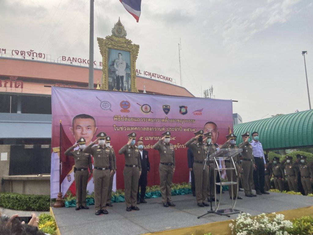 5 เม.ย.64 เวลา 16.00 น. พล.ต.ต.ปิติ นิธินนทเศรษฐ์ ผบก.ตม.1 เป็นผู้แทน พล.ต.ท.สมพงษ์ ชิงดวง ผบช.สตม. พร้อมด้วยหน่วยงานที่เกี่ยวข้อง บช.น, บช.ก.,บช.ทท.,บช.ปส., ผู้แทน มทบ.11 , ผู้แทนสำนักงานขนส่ง ,ผู้แทนกรุงเทพมหานครและอาสาสมัครตำรวจบ้าน เข้าร่วมพิธีปล่อยแถวระดมกวาดล้างอาชญากรรม ในช่วงเทศกาลสงกรานต์ ประจำปี พ.ศ.2564 โดยมี พล.ต.อ.พงษ์วุฒิ พงษ์ศรี ที่ปรึกษาพิเศษ ตร.เป็นประธาน ณ ลานหน้าสถานีขนส่งหมอชิต 2