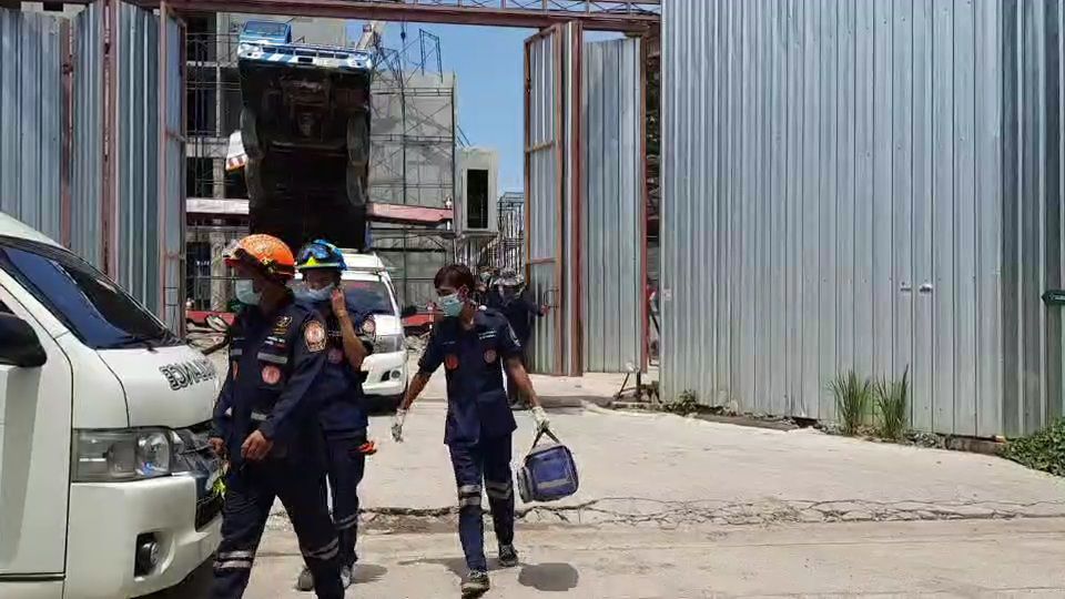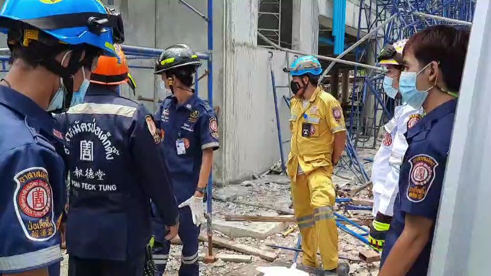 แผ่นปูนปูพื้นขนาดใหญ่หล่นทับคนงานดับสลด ย่านลาดพร้าว