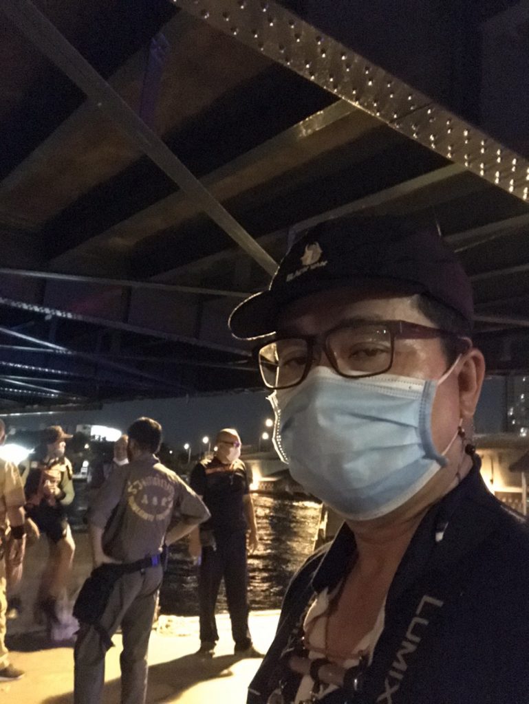 เมื่อเจ้าหน้าที่และอาสาสมัครมาถึงที่เกิดเหตุ อาสาสมัครกู้ภัยลากจูงเข้าฝั่งที่ใต้สะพานพุทธ พบเป็นชาย 1 ราย สวมใส่เสื้อคอกลมแขนยาวสีดำ กางเกงยีนส์ขายาวสีน้ำเงิน ไม่สวมรองเท้า ทราบชื่อต่อมานาย จรูญ บุญปก อายุ 49 ปี เป็นคนจังหวัดสุรินทร์ ทรัพย์สินติดตัวมีกระเป๋าตังค์ โทรศัพท์มือถือ เงินสดจำนวนนึง บัตรประชาชน บัตรเอทีเอ็ม