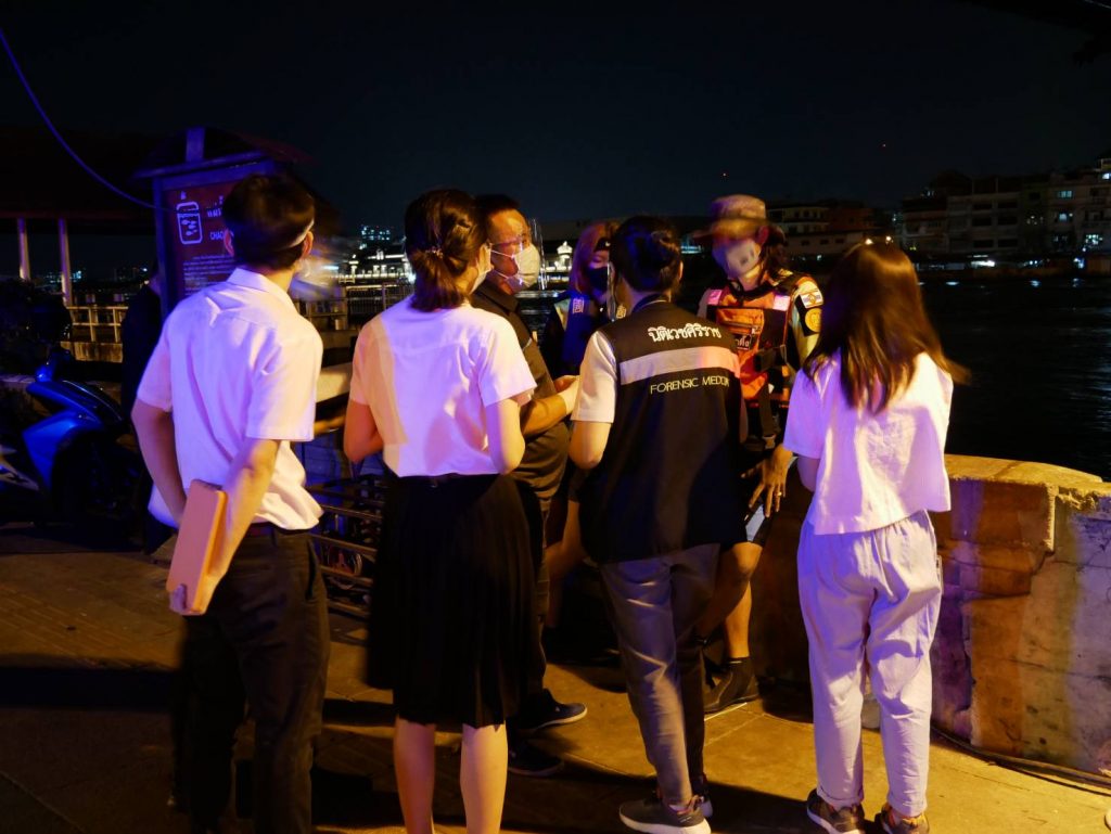 ร.ต.ท.นันท์ทัพพ์ แก่นจันทร์ รอง สว.(สอบสวน) สน.ปากคลองสาน รับแจ้งมีผู้เสียชีวิตลอยน้ำบริเวณท่าเรือสี่พระยา ใกล้เคียงกับโป๊ะทางลงเรือ จึงรีบจัดกำลังไปตรวจสอบพร้อมแพทย์นิติเวช รพ.ศิริราช และอาสาสมัครมูลนิธิร่วมกตัญญู