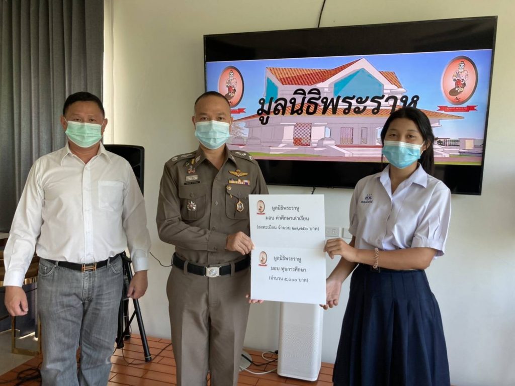 วันที่ 30 มิ.ย.2564 พล.ต.ต.ไตรรงค์ ผิวพรรณ รอง ผบช.ภ.6 ร่วมกับ ดร.หิมาลัย ผิวพรรณ เป็นตัวแทนมูลนิธิพระราหู ร่วมมอบทุนการศึกษาในส่วนของการเรียนจำนวน 27,750 บาท และทุนการศึกษา(สำหรับใช้จ่ายส่วนตัว) จำนวน 5,000 บาท รวม 32,750 บาท ให้กับน.ส.จุฑารัตน์ ทองบ้านโข้ง หรือน้องเมย์ พิณลำเพลิน มือพิณยอดกตัญญู หาเลี้ยงชีพตนเอง และบิดามารดา เพื่อแบ่งเบาภาระบิดา มารดา ด้วยการเดินสายดีดพิณ ริมถนนย่านสาทร และคลองตัน