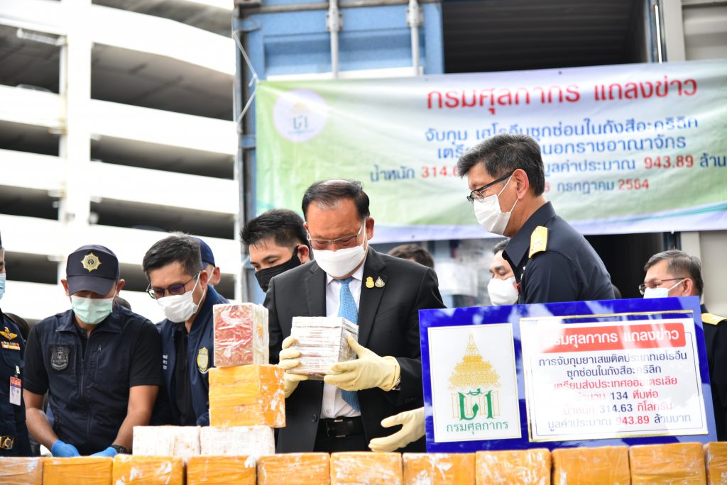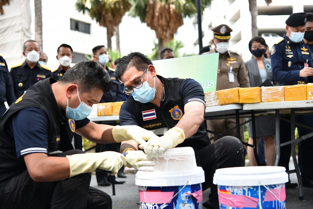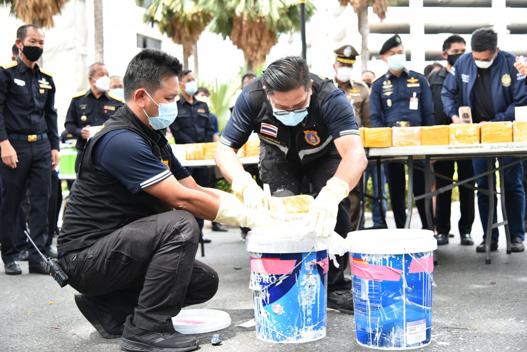 จับกุมยาเสพติดประเภทเฮโรอีนซุกซ่อนในถังสีอะคริลิก เตรียมส่งประเทศออสเตรเลีย จำนวน 134 หีบห่อ